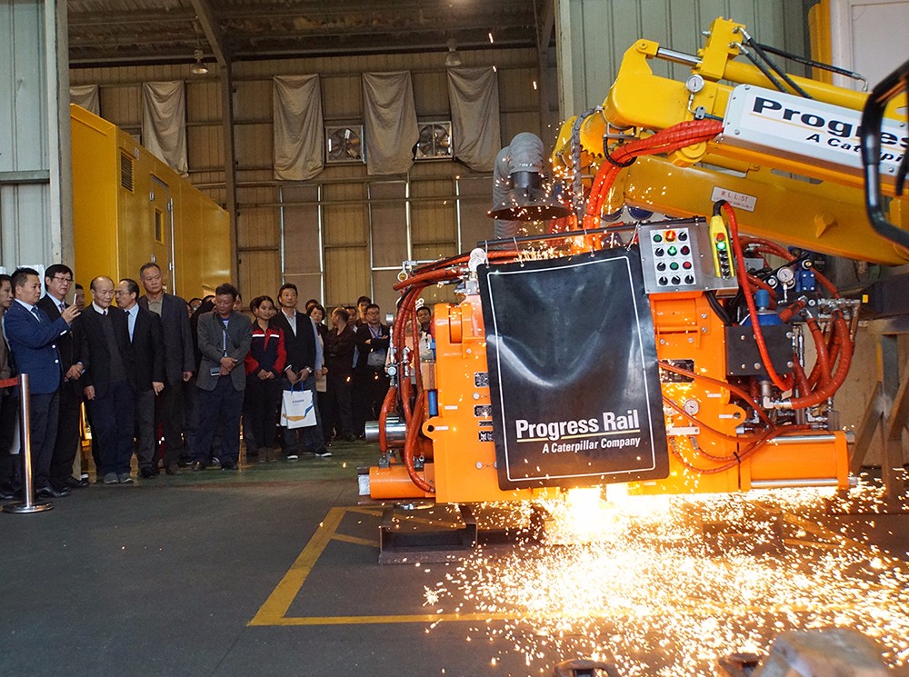 在啟世機械的焊軌機車間,與會代表觀看了采用烏克蘭巴頓電焊研究院焊接專利技術(shù)的BHP澳洲標(biāo)準(zhǔn)焊軌機現(xiàn)場焊接演示。